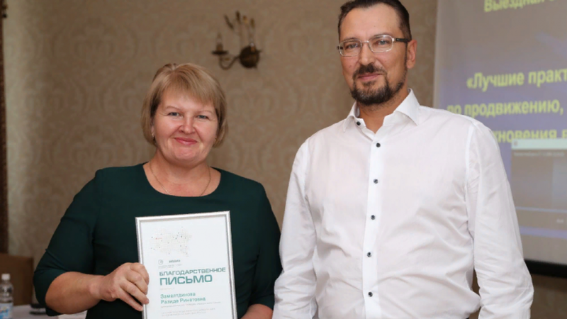 В рамках выездной сессии, генеральный директор АО «ТАТМЕДИА» А.В.Кузьмин вручил Благодарственные письма за положительную динамику посещаемости сайтов по итогам I полугодия 2018 года. Такой наградой была удостоена и главный редактор Филиала АО «ТАТМЕДИА» Редакции газеты «Туган як», «Таван ен» Дрожжановского района Резеда Замалтдинова.