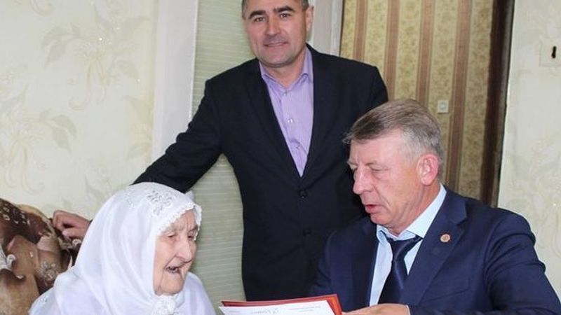 Гости вручили юбиляру от имени Президента Российской Федерации Владимира Путина поздравительную открытку и подарок от имени Главы района. Пожелали здоровья, всего самого хорошего и благополучия.