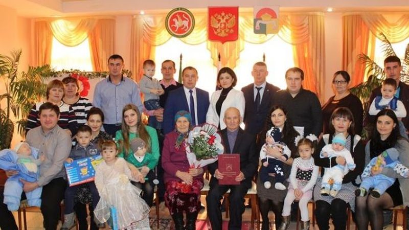 В рамках Дня матери и проекта "Крепкая семья", в отделе ЗАГС Дрожжановского района состоялось торжественное чествование семьи Ольги и Алексея Кадуковых из села Городище, которые отмечают бриллиантовую свадьбу и вручение сертификатов на материнский капитал, счастливыми обладателями которого стали 5 семей района: семья Айнулловых, семья Заляловых, семья Сабитовых, семья Тихоновых и семья Туктамышовых. Поздравили данных семей с этими знаменательными событиями исполняющий обязанности руководителя Исполнительного комитета Дрожжановского района Данис Сатдинов, заместитель по социальным вопросам Айрат Залялов, заместитель руководителя клиентской службы отдела пенсионного фонда Венера Садеева и начальник отдела ЗАГС Альбина Шарафутдинова. Они пожелали гостям крепкого здоровья на