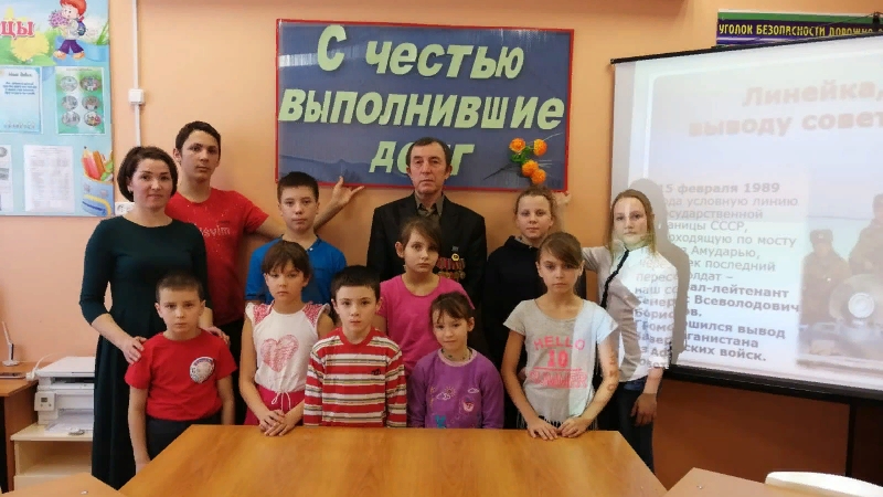 В ходе встречи присутствующие посмотрели подготовленную презентацию о той войне Афганистана. После страшных кадров и волнующих цифр, ученики с охотой слушали Геннадия Витальевича и задавали интересующие их вопросы. Интересовало ребят все: как мирные афганцы относились к нашим военным, сколько раз пришлось стрелять, приходилось ли кого-нибудь убивать, знали ли близкие о том, где находились? В своем выступлении гость рассказал о себе, о своем жизненном пути, о том, как он оказался участником военных действий, как не раз попадал под обстрелы, как самому приходилось не расставаться с автоматом ни днем, ни ночью.