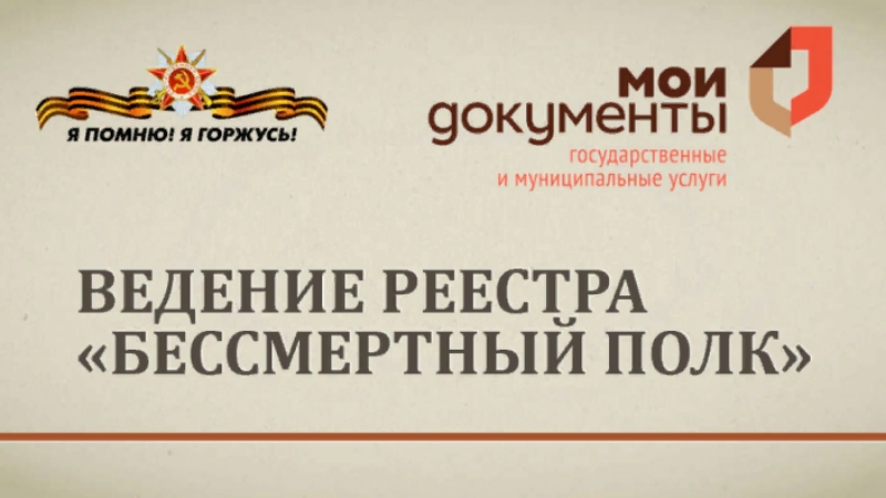 В центрах ГБУ «МФЦ в Республике Татарстан» оказывается услуга «Ведение реестра «Бессмертный полк», которая включает в себя формирование реестра участников Великой Отечественной войны на базе ГБУ «МФЦ в Республике Татарстан», а также бесплатную распечатку фотографий участников Великой Отечественной войны для участия в общероссийской акции «Бессмертный полк».