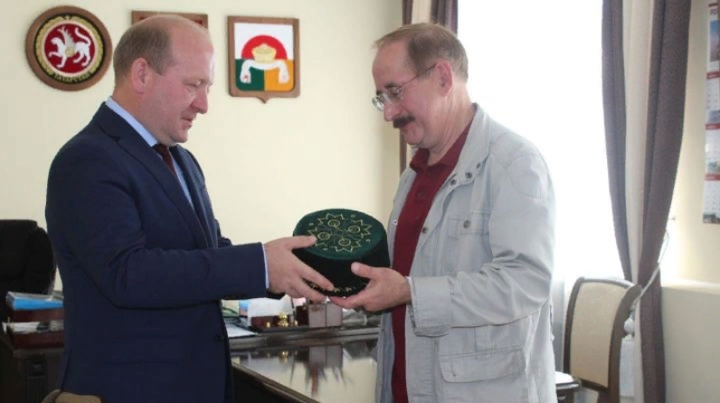 По приезду он встретился с Главой Дрожжановского муниципального района Маратом Ринатовичем Гафаровом. На встрече были затронуты вопросы о благополучном экологическом состоянии района, о создании серии живописных картин - пейзажей на тему "Образы малой Родины".