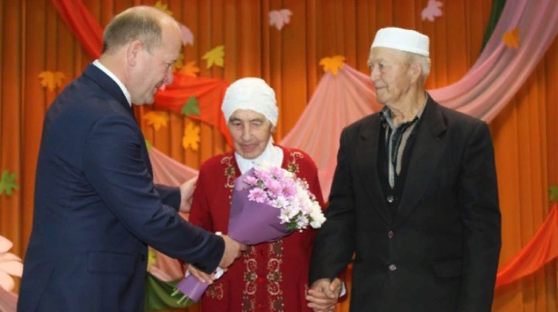На торжестве была отмечена семья Султании и Адельзяна Физхановых из села Старое Шаймурзино, которые 1 октября отмечают Золотую свадьбу. Султания апа всю жизнь работала телефонисткой, а Адельзян абый работал слесарем. С 50-летием супружеской жизни их поздравил Глава района Марат Гафаров, вручил подарки.