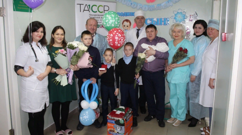 Главный врач Центральной районной больницы Ильмас Шигабутдинов вручил семье памятную медаль по случаю 100-летия ТАССР, и подарок, также приуроченный юбилейному году в республике.