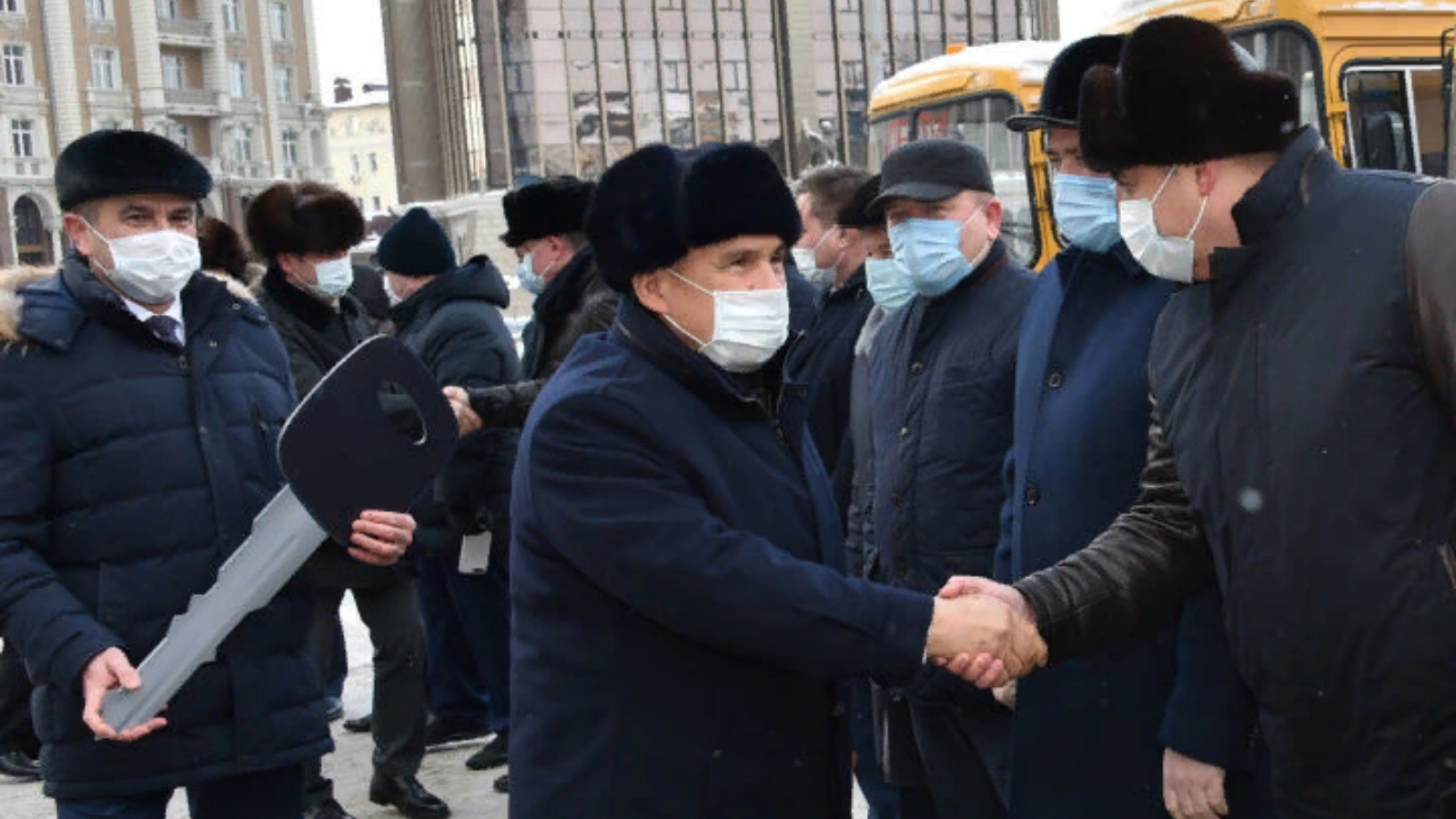 Ключи от нового транспорта муниципалитетам вручил Президент Татарстана Рустам Минниханов. Всего в рамках торжества районы республики получили 70 новых школьных автобусов.