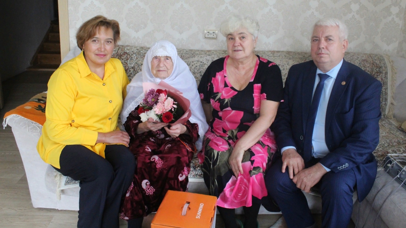 Алексей Ярухин вручил юбилярше персональное поздравление от Президента России Владимира Путина, памятный подарок от имени Главы района Марата Гафарова, цветы. Гости пожелали юбилярше долголетия и крепкого здоровья.