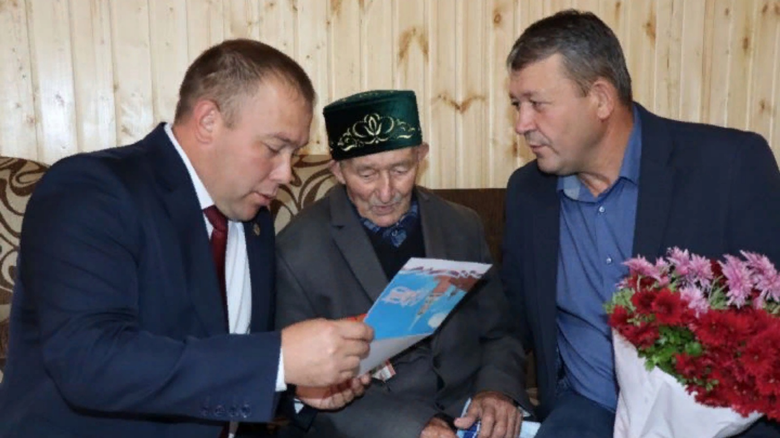 Поздравили со знаменательным событием юбиляра Руководитель Исполнительного комитета Дрожжановского района Данис Сатдинов и глава Марсовского сельского поселения Рафик Замалетдинов. Гости пожелали юбиляру здоровья, бодрости духа, внимания родных и близких, а также вручили поздравительную открытку Президента РФ и подарок от имени главы района.