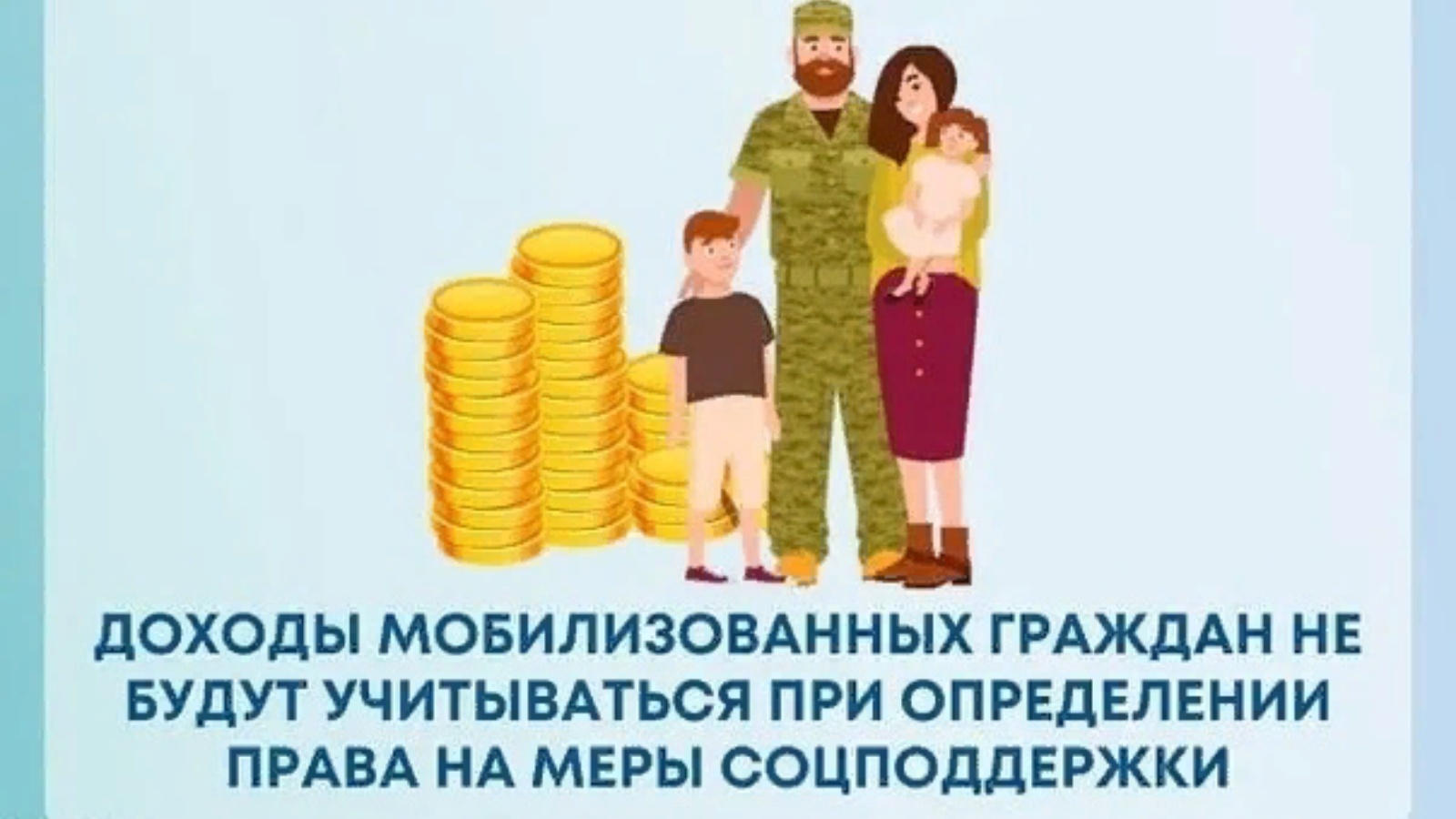 «Если отца ребенка призвали на военную службу по мобилизации, его прошлые заработки, включая зарплату, премии, предпринимательский доход и прочие, теперь не учитываются при расчете нуждаемости. Кроме того, если ранее семье было отказано в пособии по причине отсутствия заработка у мобилизованного, теперь его супруга может повторно обратиться в Пенсионный фонд за пособием. Решение об отказе в выплате из-за отсутствия в расчетном периоде доходов вынесено не будет», - отметил глава Пенсионного фонда Татарстана Эдуард Вафин.