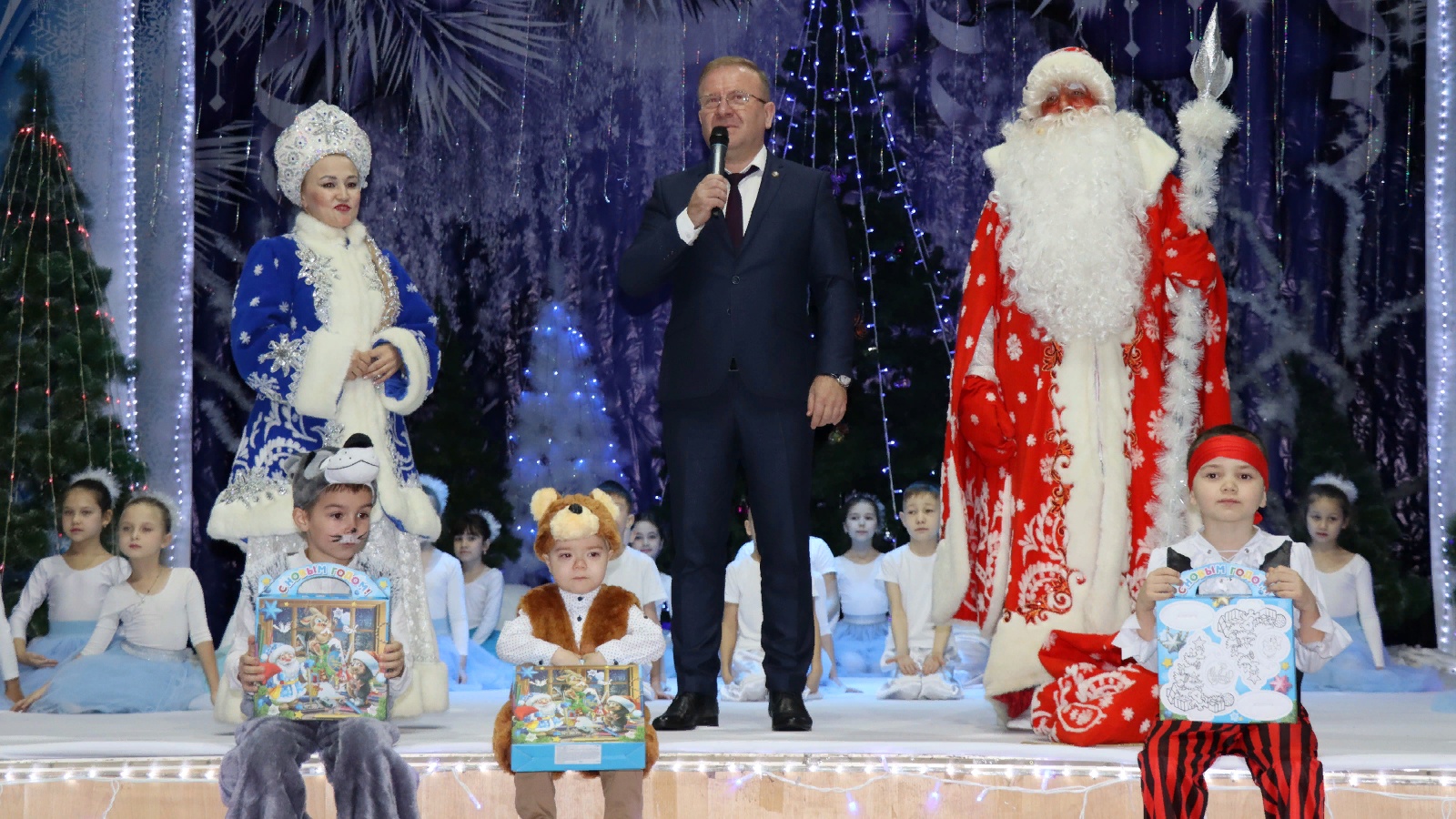 Перед началом представления с наступающим Новым годом ребят поздравил глава района Марат Гафаров. Он пожелал здоровья, успехов в учебе, радовать родителей своими улыбками и исполения всех заветных желаний.