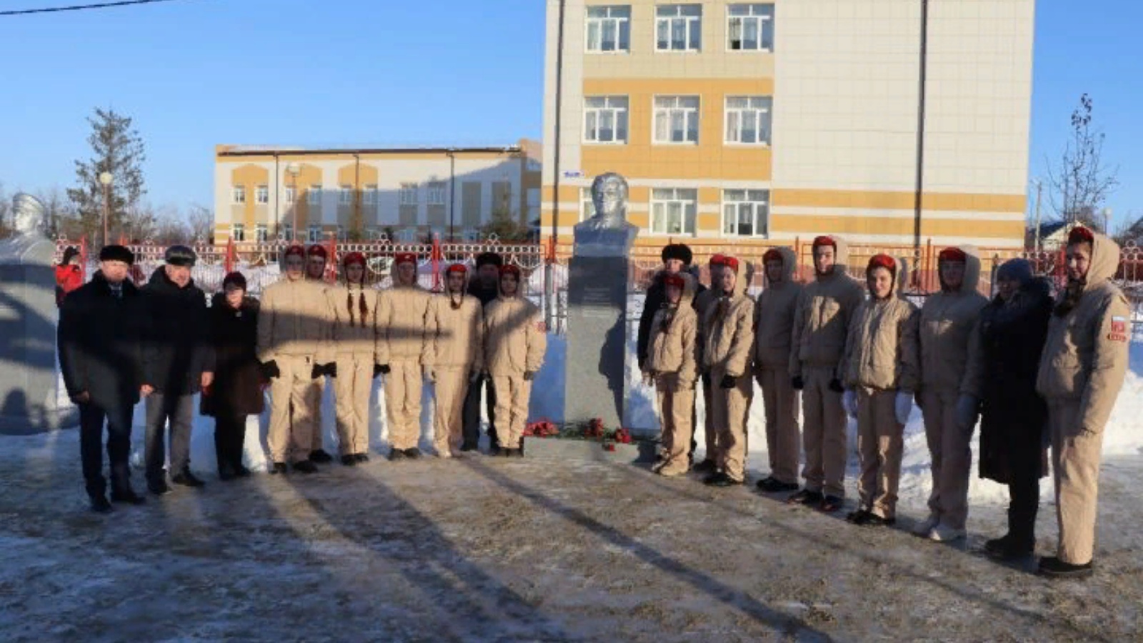 По окончанию митинга представители администрации района, юнармейцы возложили к бюсту героя цветы.