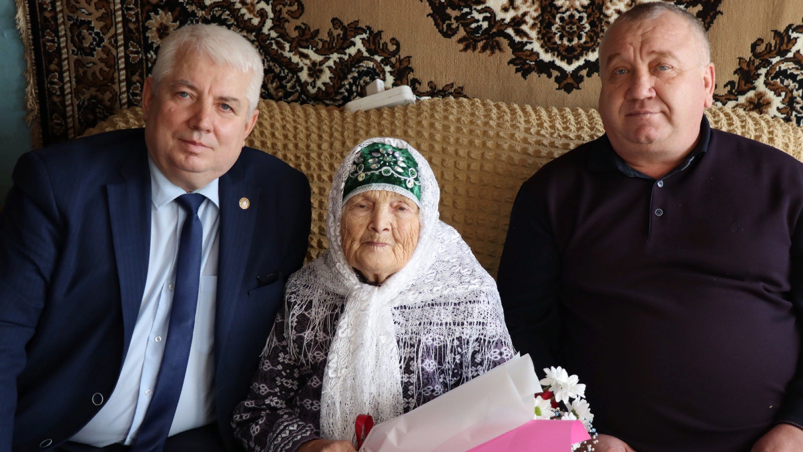 Юбиляршу поздравили с днём рождения заместитель главы Дрожжановского района Алексей Ярухин и глава Алешкин-Саплыкского сельского поселения Петр Артемьев. Гости пожелали здоровья, внимания детей, благополучия, отметить 95 и 100-летние юбилеи. Вручили подарки и цветы.