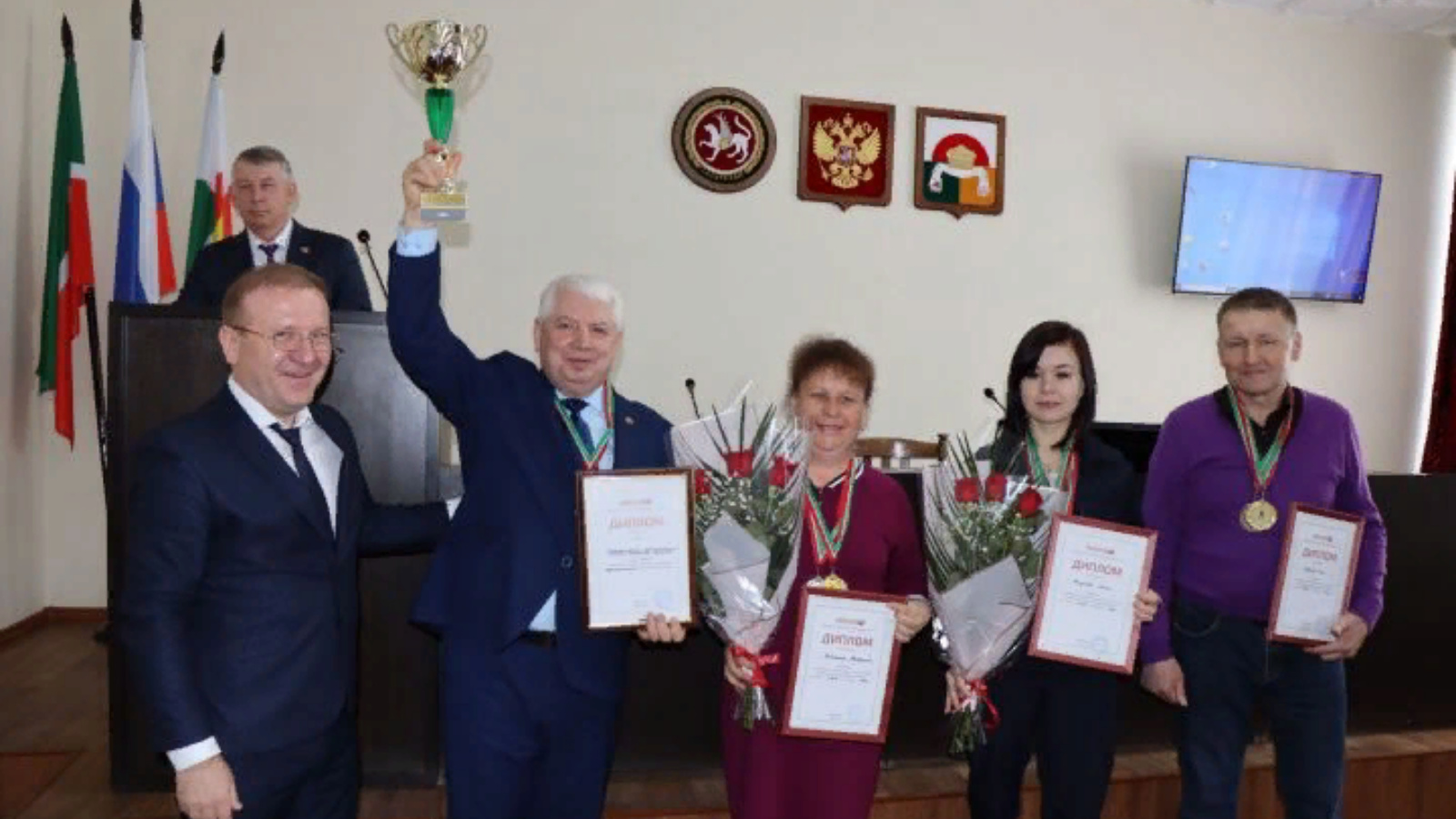 Во время делового понедельника глава Дрожжановского района Марат Гафаров поздравил команду муниципальных служащих с победой в лыжных соревнованиях. Напомним, в субботу в Казани прошли соревнования по лыжным гонкам в рамках Спартакиады муниципальных служащих Республики Татарстан.