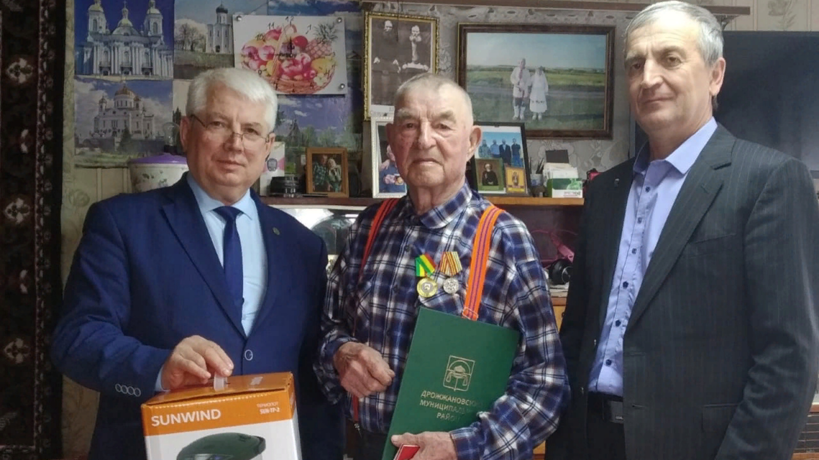 Алексей Ярухин тепло поздравил Василия Ивановича с юбилеем, вручил юбилейные медали в честь 90-летия образования Дрожжановского района и от Российского комитета ветеранов в честь 75-летия Великой Победы, поздравительное письмо главы района, подарки. Гости пожелали ветерану здоровья, тепла, спокойной старости.