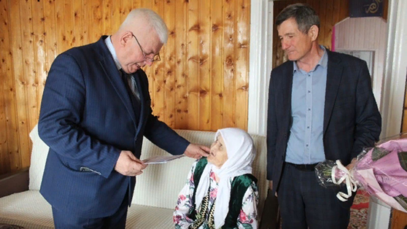 Поздравить труженицу тыла и ветерана труда приехали заместитель главы Дрожжановского муниципального района Алексей Ярухин и глава Старочукалинского сельского поселения Рамис Низамутдинов.