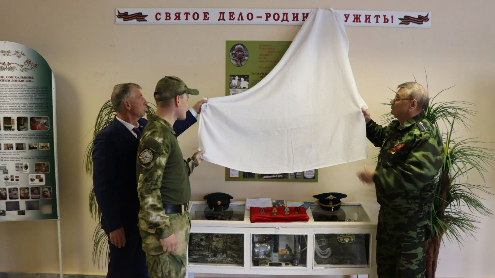 На школьном мемориале памяти представлена вся жизнь Героя и его личные вещи.