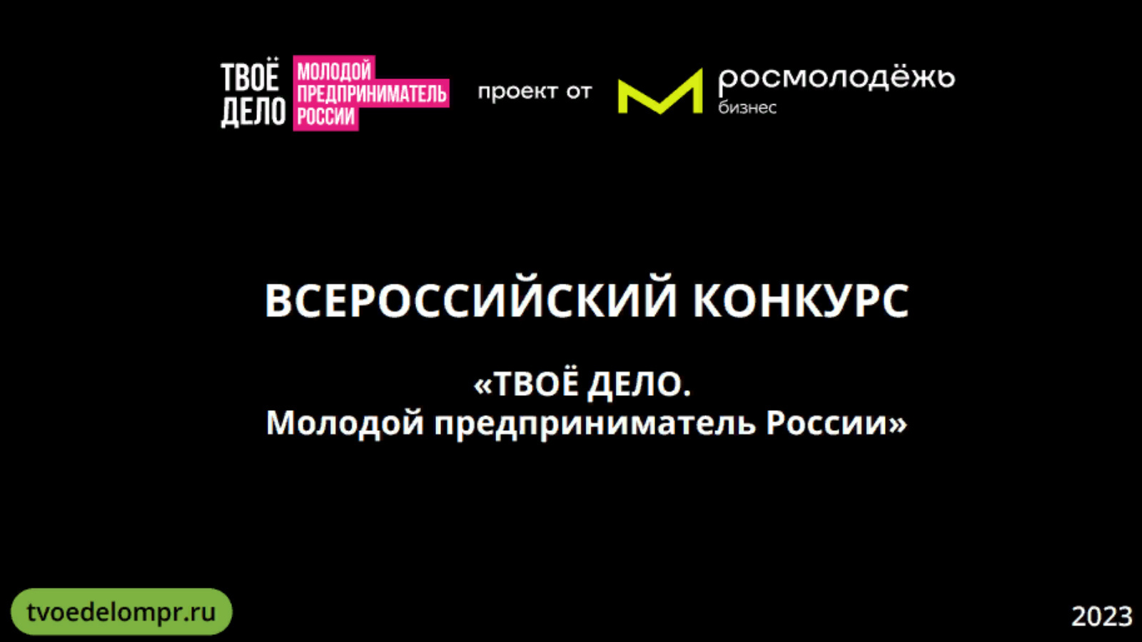 В рамках реализации Всероссийской программы по развитию молодежного предпринимательства с 25 мая по 12 ноября 2023 года проводится Всероссийский конкурс «ТВОЕ ДЕЛО. Молодой предприниматель России» (далее – Конкурс).