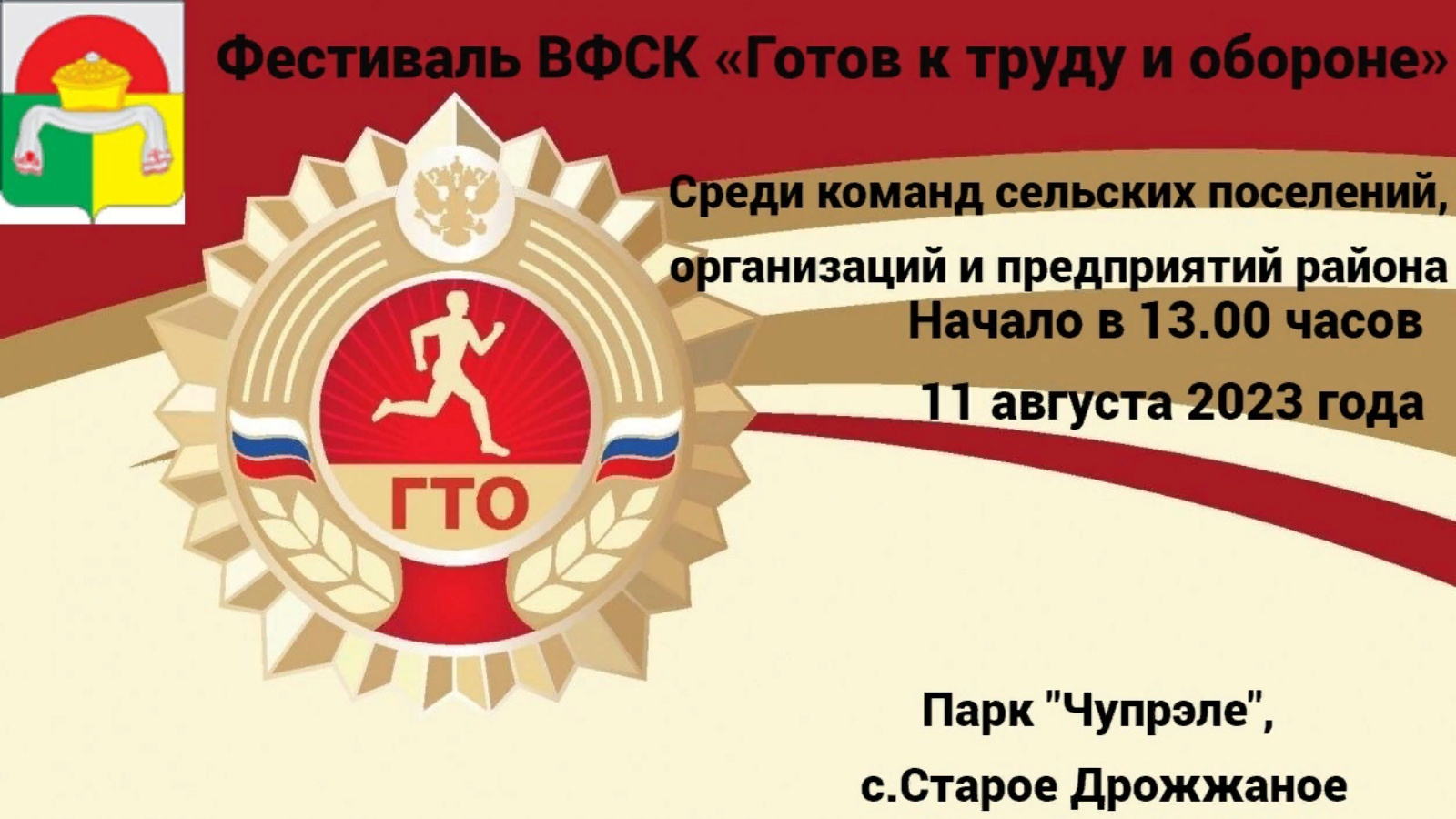 Завтра, в 13.00 часов 11 августа 2023 года, в парке "Чупрэле" состоится фестиваль ВФСК «Готов к труду и обороне» среди команд сельских поселений, организаций и предприятий района. Состав команды 3 участника вне зависимости от пола и возраста. Виды испытаний:
