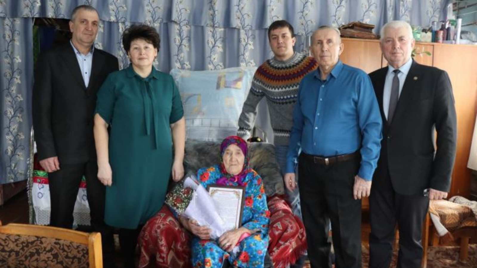 Они отметили, что виновница торжества является примером трудолюбия, мудрости и терпения, ее заслуги неоценимы. Гости пожелали юбилярше крепкого здоровья, благополучия, долгих и счастливых лет жизни, а близкие люди радовали своей заботой и вниманием. Они также вручили поздравительное письмо от имени главы района Марата Гафарова, подарок и цветы.