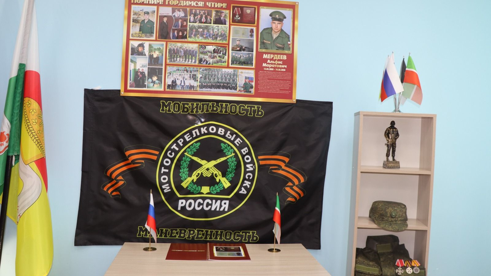 В школьном Мемориале памяти о герое собраны личные вещи, награды героя, фотографии.