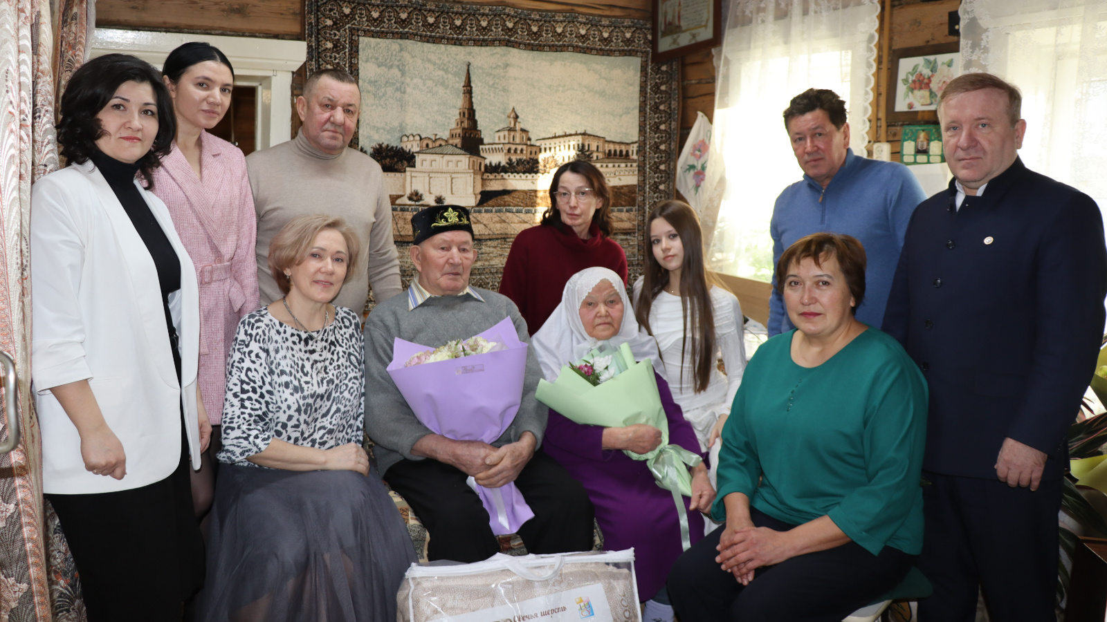 — От всей души поздравляю вас с великолепным событием — вашим 70-летним браком, именуемым «благодатной свадьбой», и девяностолетием уважаемой Фагимы апы! Вы шли проверенными испытаниями временем и стали символом настоящей преданности и супружеского согласия. Желаю вам крепчайшего здоровья, активного образа жизни и светлой мудрости. Пусть ваши дни будут полны покоя, тепла и искренней заботы друг о друге. Здоровья и дней без тревог!