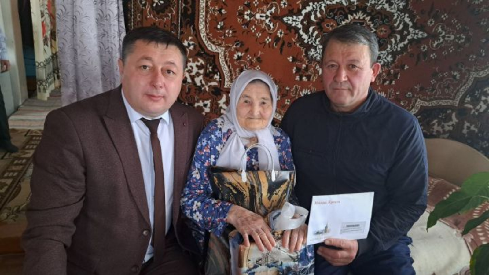 Гости пожелали имениннице здоровья и вручили цветы. Бибихасана Сиразетдиновна, в свою очередь, поблагодарила их за визит и внимание.