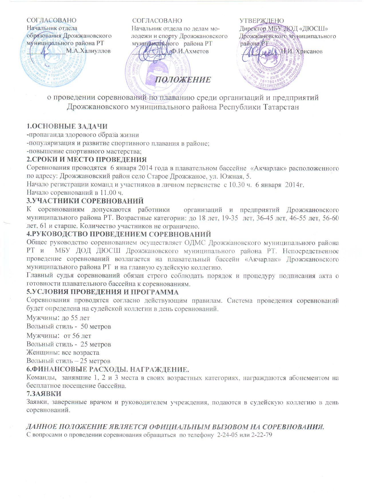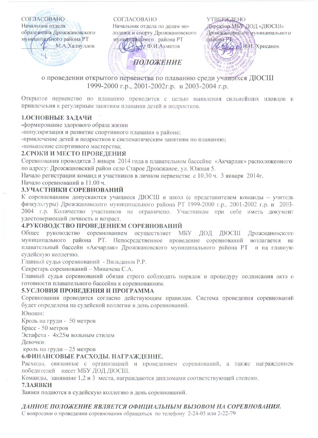 Положение о проведении открытого первенства по плаванию среди учащихся ДЮСШ