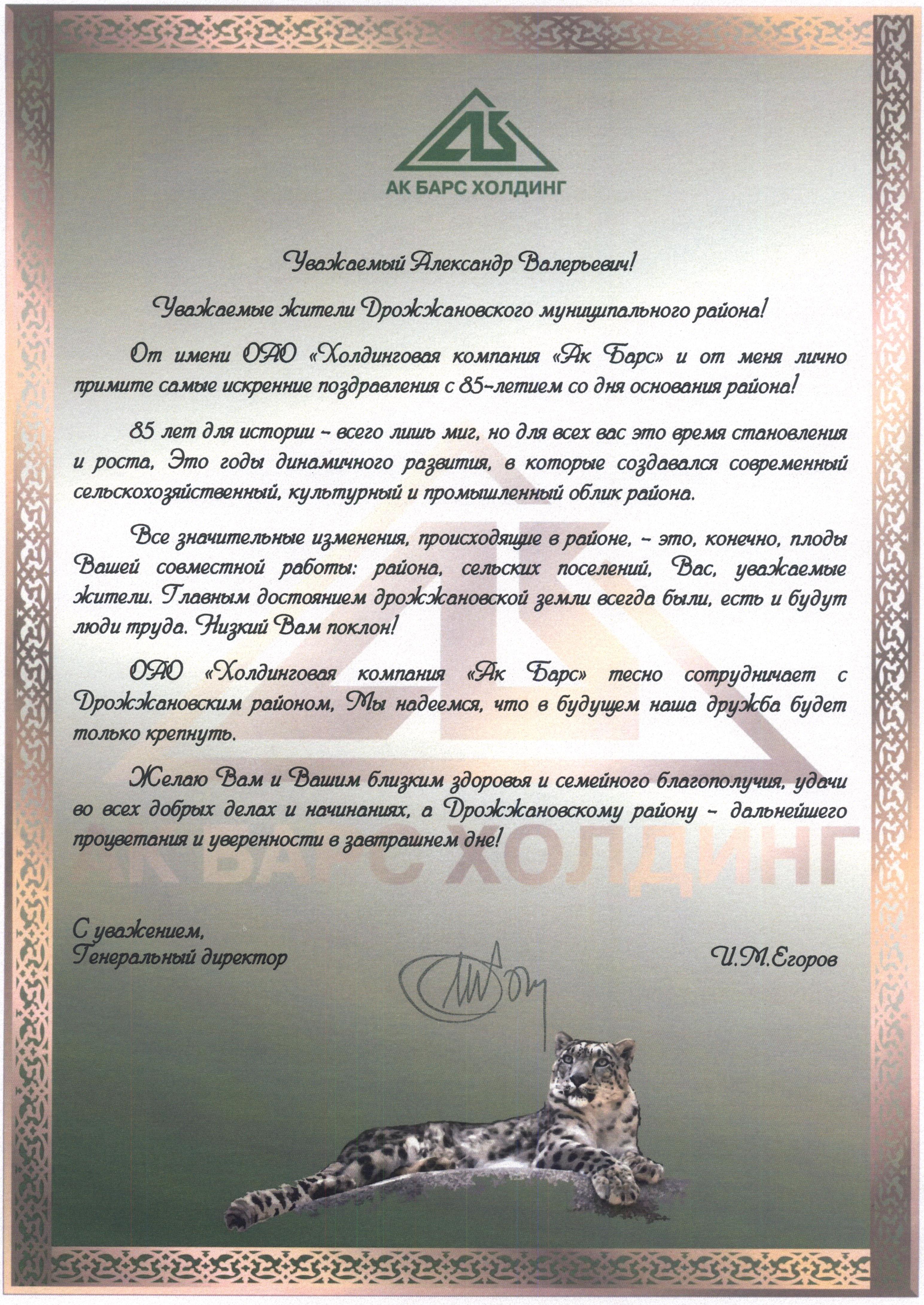 Поздравление Егорова Ивана Михайловича с юбилеем района