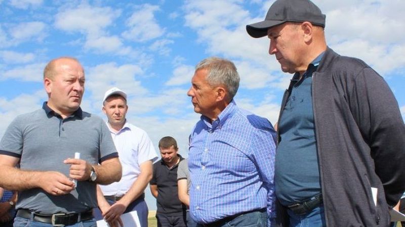 Хуҗалыклар җитәкчеләре һәм авыл җирлекләре башлыклары белән очрашу барышында Рөстәм Миңнеханов урып-җыю барышында нәтиңәле эш күрсәткән комбайнчыларга бүләк тапшырды һәм басулардагы хәлләр турында сорашты. Аңа җавап итеп Марат Гафаров быел бөртекле культураларның 35,8 мең гектарда игелүен бүгенге көндә районыбыз игенчеләренең урып-җыю кампаниясе экваторын узганлыгы турында белдеде.