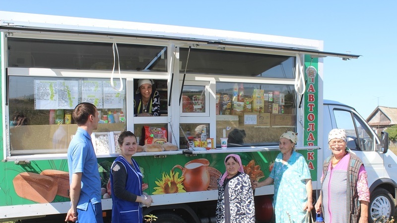 Бүгенге көндә районның 9 торак пунктына махсус кибет итеп җиһазландырылган шундый ике машина йөри башлады. Тәгәрмәчле кибетләрдә барысы да бар: кирәкле товар, аларны саклау өчен суыткыч, электрон үлчәү, киштәләр... Күчмә сату итү эше белән эшмәкәрләр: Шланга авылыннан Илнар Садеев һәм Зур Чынлыдан Зөлфирә Гайнетдинова улы Илмир белән шөгыльләнә.
