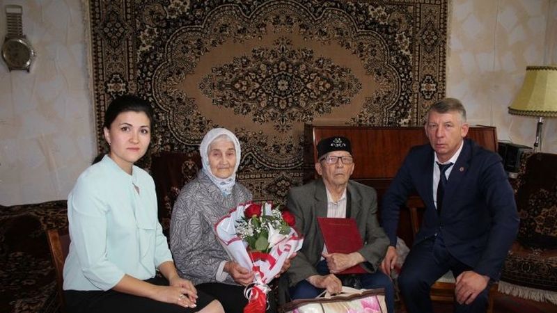 Башкарма комитет җитәкчесе урынбасары Айрат Җәләлов һәм ГХАТ бүлеге җитәкчесе Альбина Шәрәфетдинова Иске Чүпрәле авылында яшәүче Фәхретдиновлар Рифкать абый һәм Найлә апа, Иске Шәйморза авылында яшәүче Гыйззәтуллиннар Тимерша абый һәм Мөнирә апа, Кече Үби авылында Молгачевлар Агафон Иванович һәм Ольга Дмитриевнаны өйләренә барып котладылар. Ачык йөзле хуҗалар кунакларны күз нурлары, шатлыклы елмаюлар белән каршы алды. Айрат Җәләлов аларга район башлыгы Марат Гафаров исеменнән котлау сүзләре белән мөрәҗәгать итте: