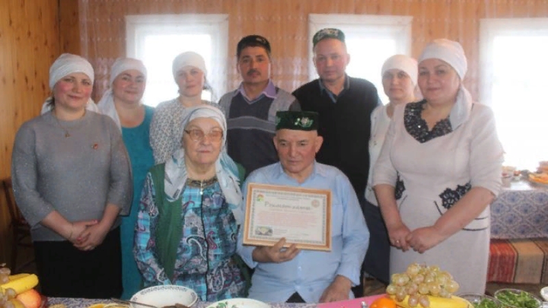 Әтиләренең һәм бабаларының 80 яшьлек юбилее уңаеннан ветеранның барлык балалары, кияү-киленнәре, оныклары кайткан иде. Ветераннарның район советы рәисе урынбасары Рөстәм Хәмидуллин, районда озак еллар баш зоотехник, ветеринария табибы булып эшләгән Шәүкәт Алимов юбилярга бүләкләр алып килгәннәр, район авыл хуҗалыгы һәм азык-төлек идарәсенең Рәхмәт хатын тапшырдылар/