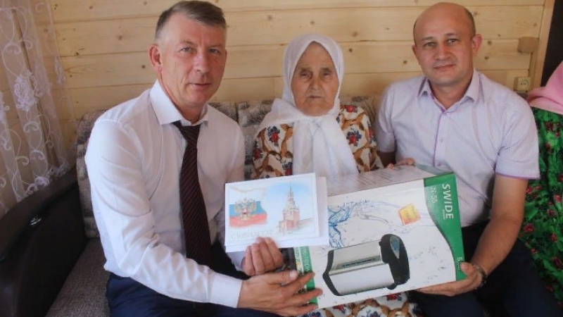 Әлеге юбилее уңаеннан аны район башкарма комитеты җитәкчесенең социаль мәсьәләләр буенча урынбасары Айрат Җәлалов һәм Зур Чынлы авыл ы җирлеге башлыгы Фаил Фәтхуллов тәбрикләргә килде. Илнең иң авыр елларында үз – үзен аямыйча куйган хезмәте өчен Сәгадәт әбигә Айрат Фиркатович Россия Президенты Владимир Путинның Рәхмәт хатын һәм Чүпрәле муниципаль районы Башлыгы Марат Гафаров исеменнән истәлек бүләге тапшырды. Сәгадәт әби үзен олылап тапшырылган бүләкләр өчен җитәкчеләргә рәхмәт сүзләрен җиткерүне сорады.