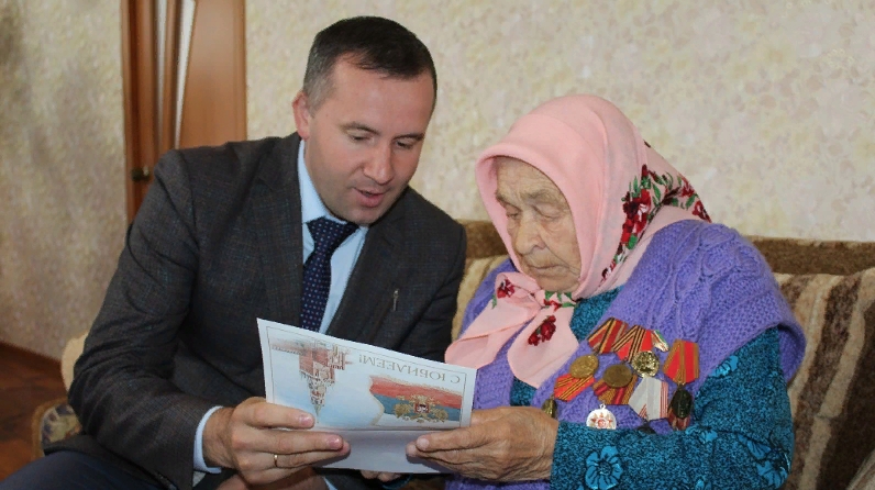 Александра Васильевнаны 90 яшьлеге белән котларга район Башкарма комитеты җитәкчесе урынбасары Ильмир Измайлов һәм Иске Чүпрәле авыл җирлеге Башлыгы урынбасары Рамил Низамов килделәр. Алар юбилярга Россия Президенты Владимир Путин исеменнән котлау хаты һәм район Башлыгы Марат Гафаров исеменнән бүләк тапшырдылар, җылы теләкләрен юлладылар.