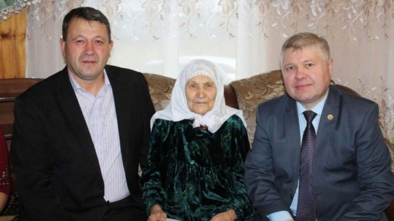 Шәмсебану апаны олы юбилеен билгеләп үтәргә җыенган өй тулы балалары белән берлектә район Советы Аппараты җитәкчесе Эмиль Әхмәтов һәм авыл җирлеге башлыгы Рәфикъ Җамалетдинов тәбрикләде, Россия Федерациясе Президенты Владимир Путинның Котлау хатын һәм район башлыгы Марат Гафаровтан истәлекле бүләк тапшырдылар. Авыл мәдәният йорты исеменнән Гөлсинә Чабаева да, юбилярны тәбрикләп, иң матур теләкләрен җиткерде.