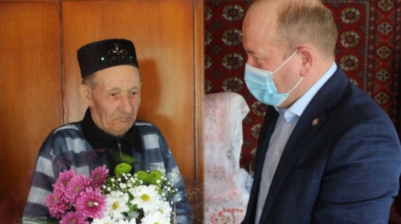Район башлыгы Марат Гафаров Зиннур абыйга 90 яшьлеге уңаеннан Россия Президентының Котлау хатын, чәчәк бәйләмнәре, бүләк тапшырды.
