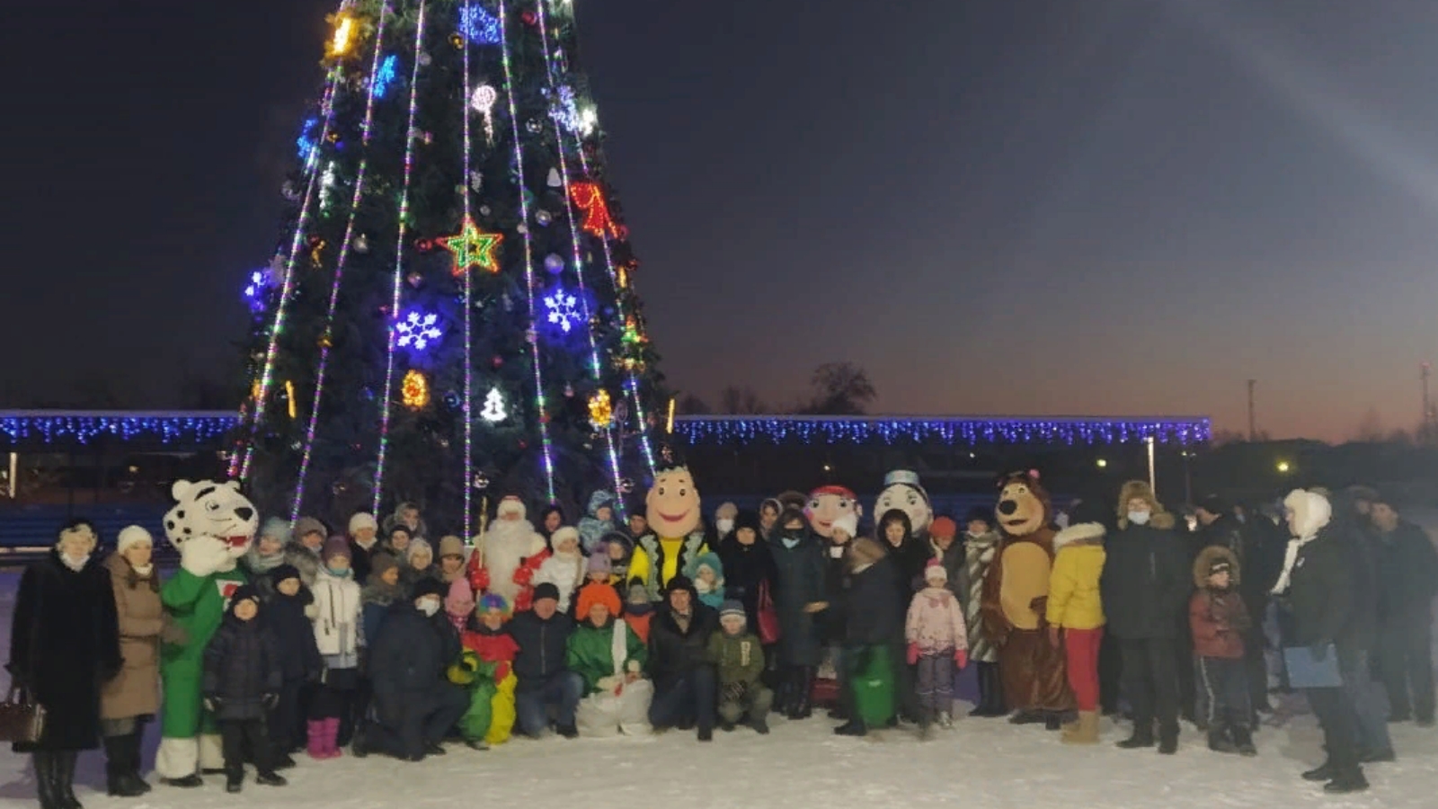 Яңа ел чаралары башлану турында рәсми рәвештә игълан итәргә Кыш Бабай һәм Кар кызы, шулай ук район мәдәният йорты халык театрының персонажлары килде.