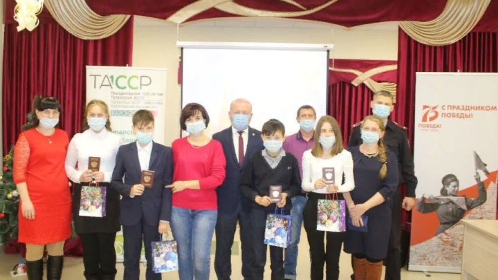 Россия Федерациясе гражданы паспортлары дүрт балага: Данил Алексеевка, Мария Еремеевага, Зөлфәт Тәҗетдиновка, Рузилә Хәсанова тапшырылды.