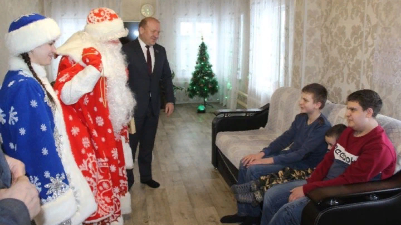 Ул балаларны якынлашып килүче Яңа ел белән котлады һәм аларга бүләкләр тапшырды, сәламәтлек, укуларында һәм тормышларында уңышлар теләде.
