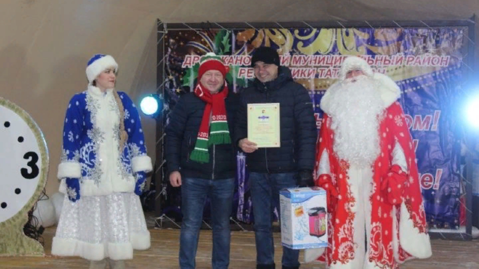 "Үзәк мәйданны һәм район үзәге урамнарын матур итеп бизәгән өчен" «Фламинго» җәмгыяте директоры Альфред Низамов бүләкләнде.
