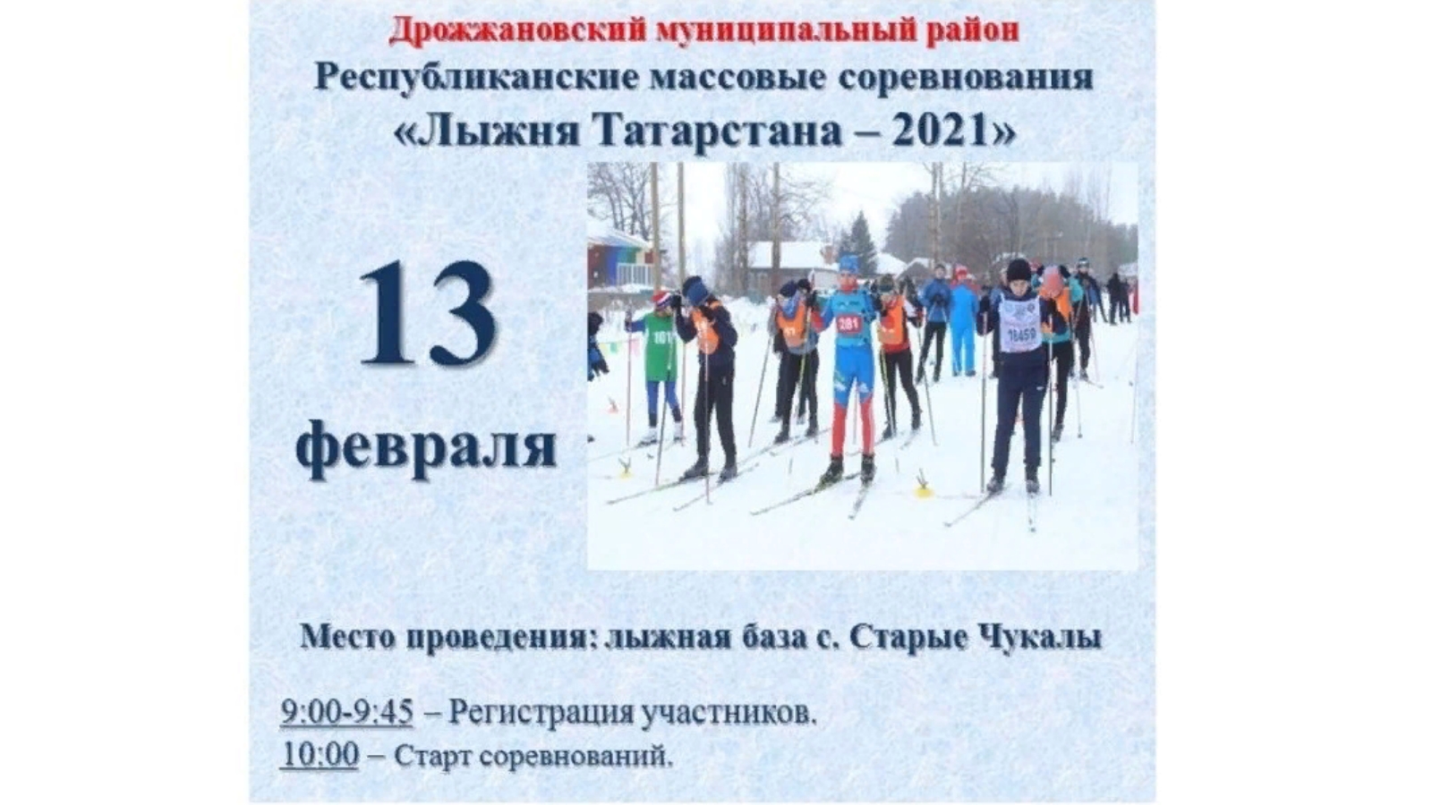 13 февральдә Чүпрәле районында «Татарстан чаңгы юллары - 2021» массакүләм ярышлары узачак.