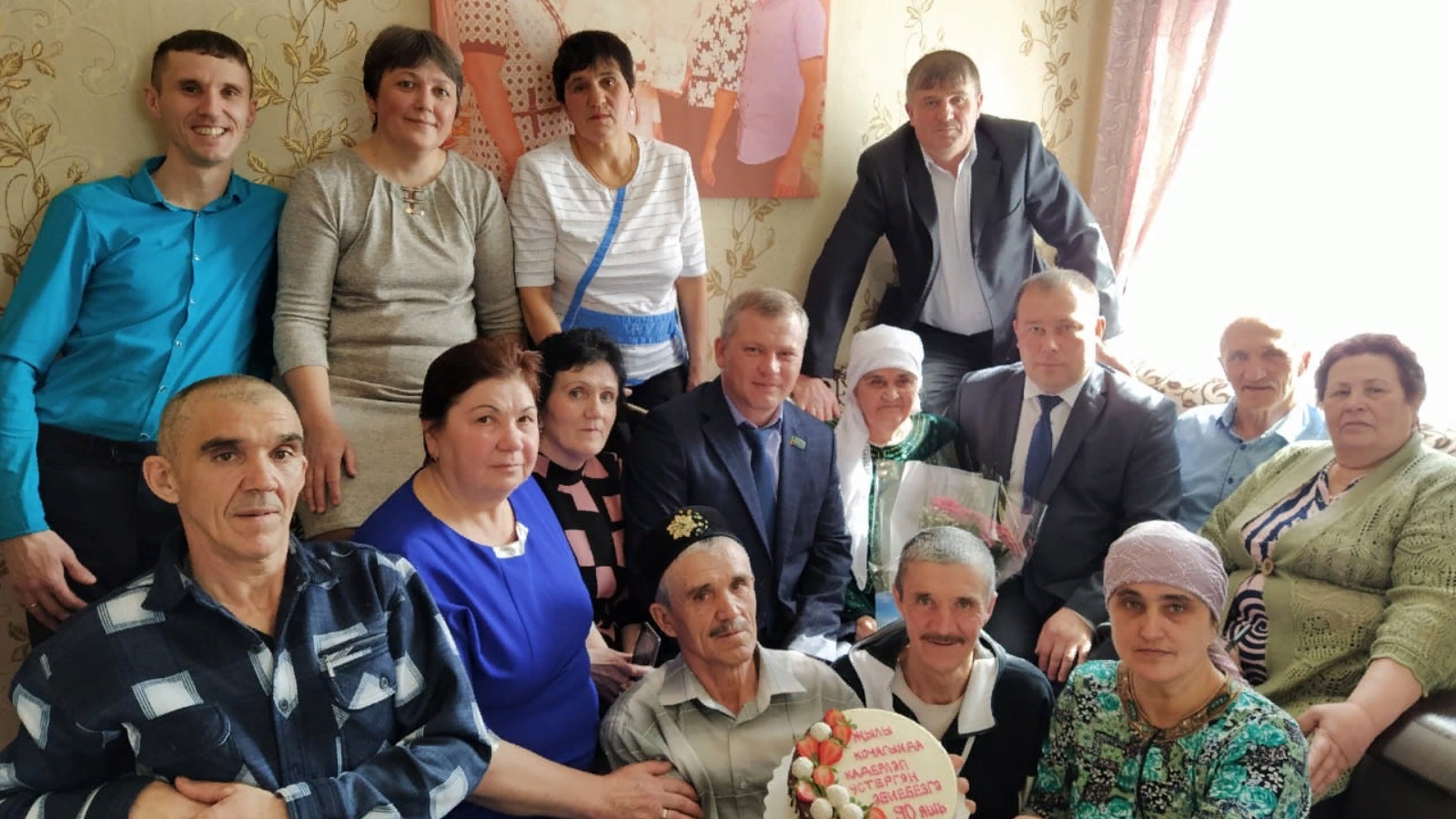 Хезмәт ветеранын котларга район Башкарма комитеты җитәкчесе Данис Сатдинов һәм Иске Чүпрәле авыл җирлеге башлыгы Рамиль Низамов килгән иделәр. Юбилярга Россия Президентының котлау сүзләрен, район башлыгының бүләкләрен, чәчәк бәйләмнәре тапшырдылар, бәхетле картлык гомеренең дәвамлы булуын теләделәр.
