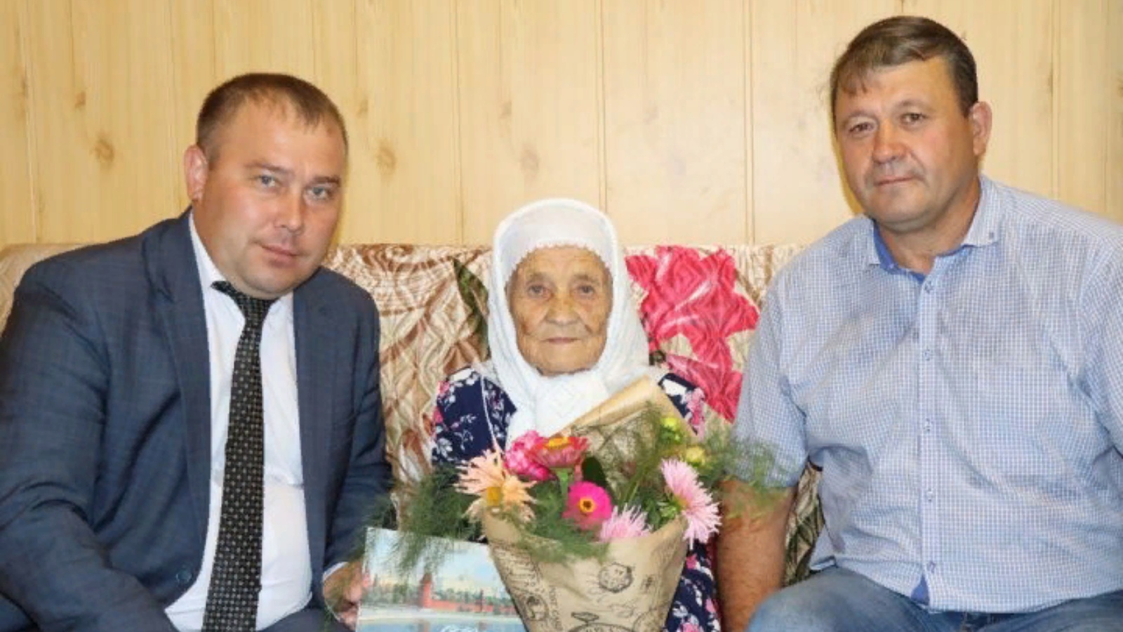 Бу көнне юбилярны котларга район Башкарма комитеты җитәкчесе Данис Сатдинов һәм авыл җирлеге башлыгы Рәфыйк Җамалетдинов килгән иде. Алар Россия Федерациясе Президенты В.В. Путин исеменнән котлау хаты һәм район башлыгы исеменнән бүләк тапшырып, саулык, балалар шатлыгы теләделәр.