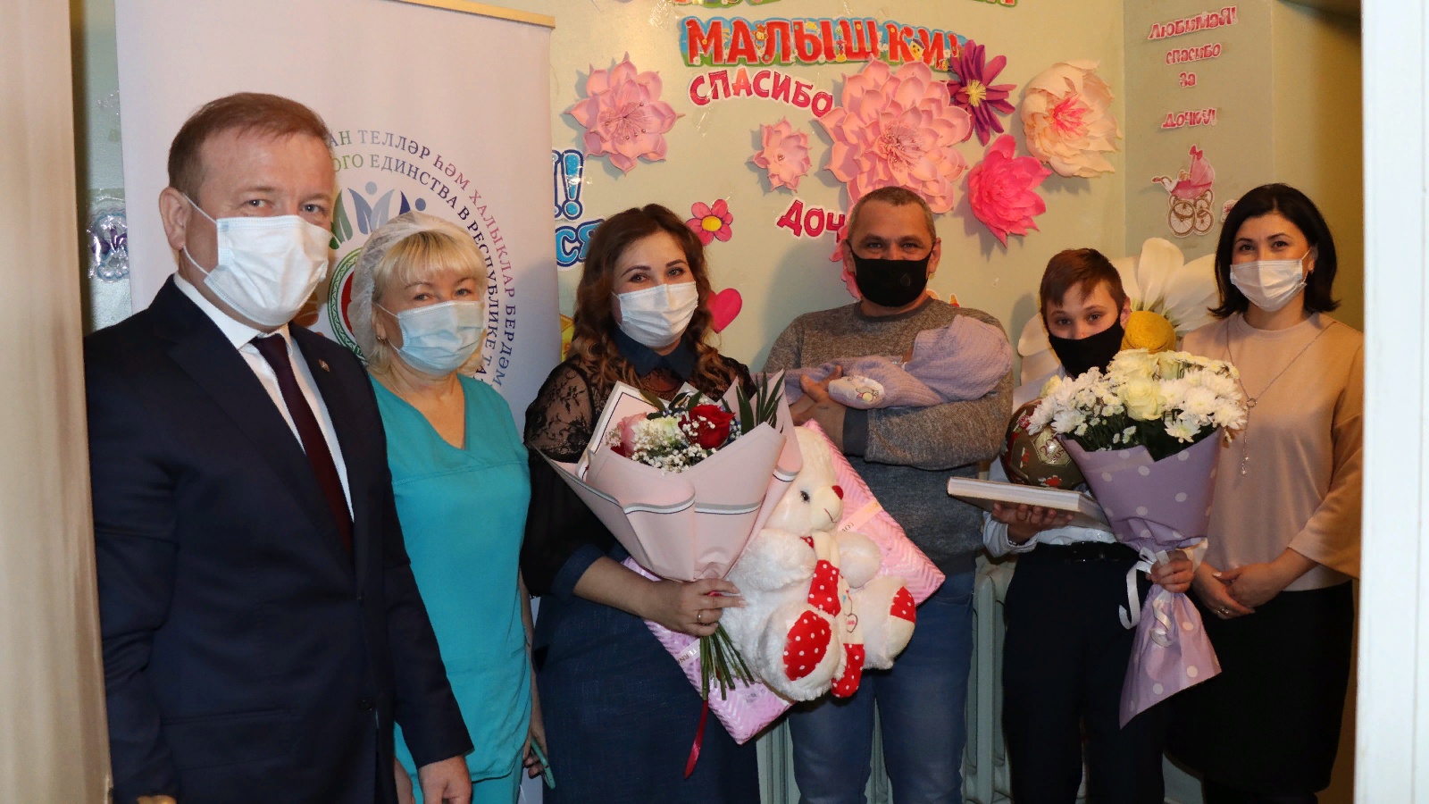 Район башлыгы Марат Гафаров сабыйның әти-әнисенә котлау сүзләре белән мөрәҗәгать итеп, гаиләнең бала туу – бик дулкынландыргыч һәм бәхетле мизгелләрнең берсе булуын билгеләде. Вероника һәм Сергейга кечкенә Елизаветаның беренче документын - туу турындагы таныклыгын һәм бүләкләр тапшырды, исәнлек, бәхет, иминлек теләде.
