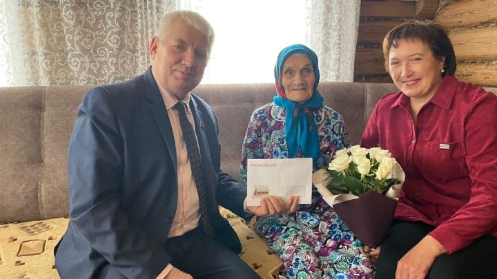 Бу истәлекле көнне юбилярны район башлыгы урынбасары Алексей Ярухин һәм Иске Шәйморза авыл җирлеге башлыгы Илһамия Мухитова котлады. Кунаклар юбилярга Россия Федерациясе Президенты Владимир Путинның Котлау хатын һәм район башлыгы Марат Гафаров исеменнән бүләкләр тапшырдылар.