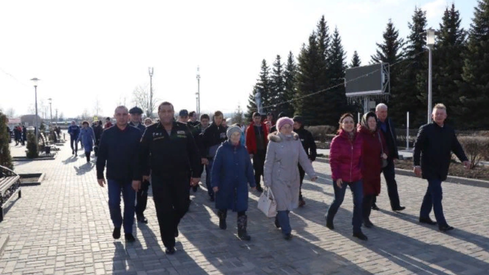Район халкы төрле яшьтәге, мәктәп укучыларыннан, тармак технологияләре техникумы студентларыннан һәм мөгаллимнәреннән алып пенсионерларга кадәр, үз маршрутларын 10 мең адымга башлап җибәрү өчен, мәдәният йорты каршындагы үзәк мәйданда җыелды.