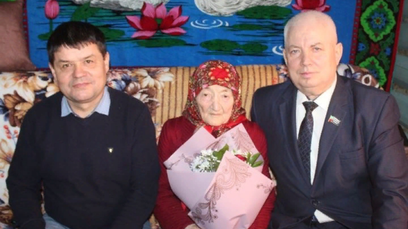 Тыл хезмәтчәнен һәм хезмәт ветеранын котларга Чүпрәле муниципаль районы башлыгы урынбасары Алексей Ярухин һәм Олы Аксу авыл җирлеге башлыгы Алексей Храмов килделәр. Алар ветеранны юбилее белән котладылар һәм Россия Федерациясе Президенты В.В. Путин исеменнән котлау открыткасы, Чүпрәле муниципаль районы башлыгы Марат Гафаровтан чәчәкләр һәм бүләкләр тапшырдылар, сәламәтлек теләделәр.