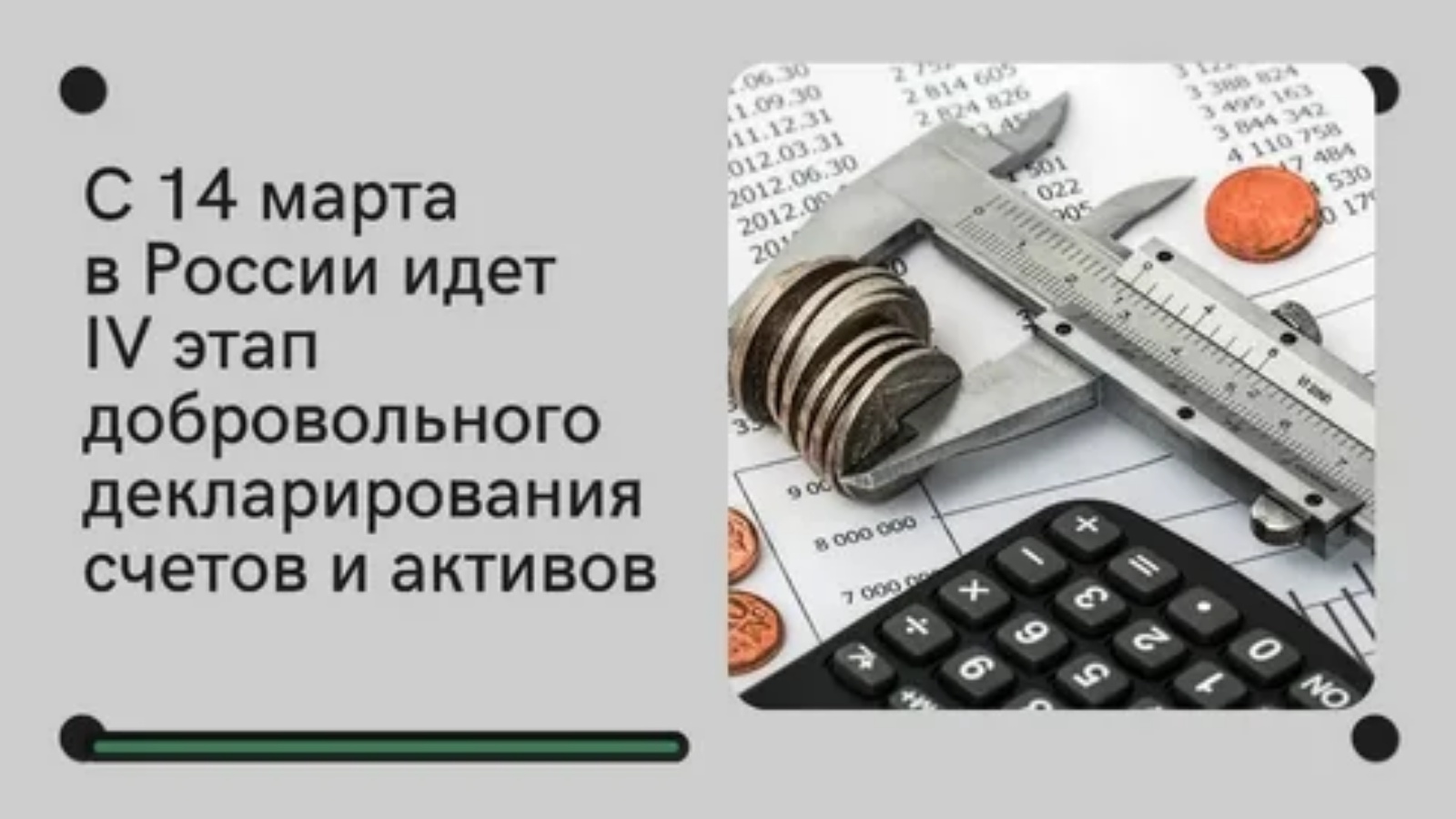Декларацияләү һәм Россия Федерациясенең аерым закон актларына үзгәрешләр кертү турында «Федераль законга үзгәрешләр кертү турында» 09.03.2002 ел, № 48-ФЗ Федераль закон нигезендә, 14 марттан капитал амнистиясенең дүртенче этабы башланды.