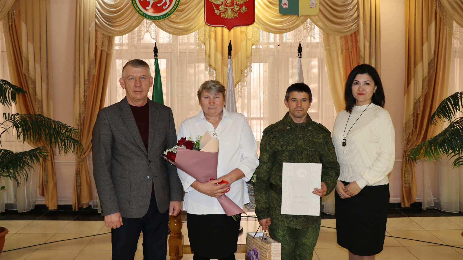 Мобилизацияләнгән Леонидка никахын рәсмиләштерү өчен өч көн биргәннәр. Аларны Башкарма комитет җитәкчесе урынбасары Айрат Җәләлов котлады. Мондый катлаулы вакытта мөһим карар кабул итүләрен билгеләп үтте, гаилә бәхете һәм уңышлар теләде.