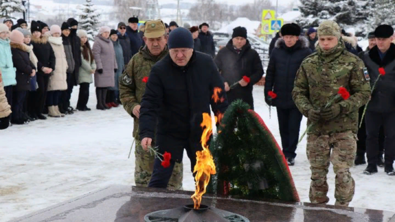 Җыелганнар Мәңгелек ут янына чәчәкләр һәм венок салдылар һәм һәлак булган сугышчыларны бер минутлык тынлык белән хөрмәтләделәр.