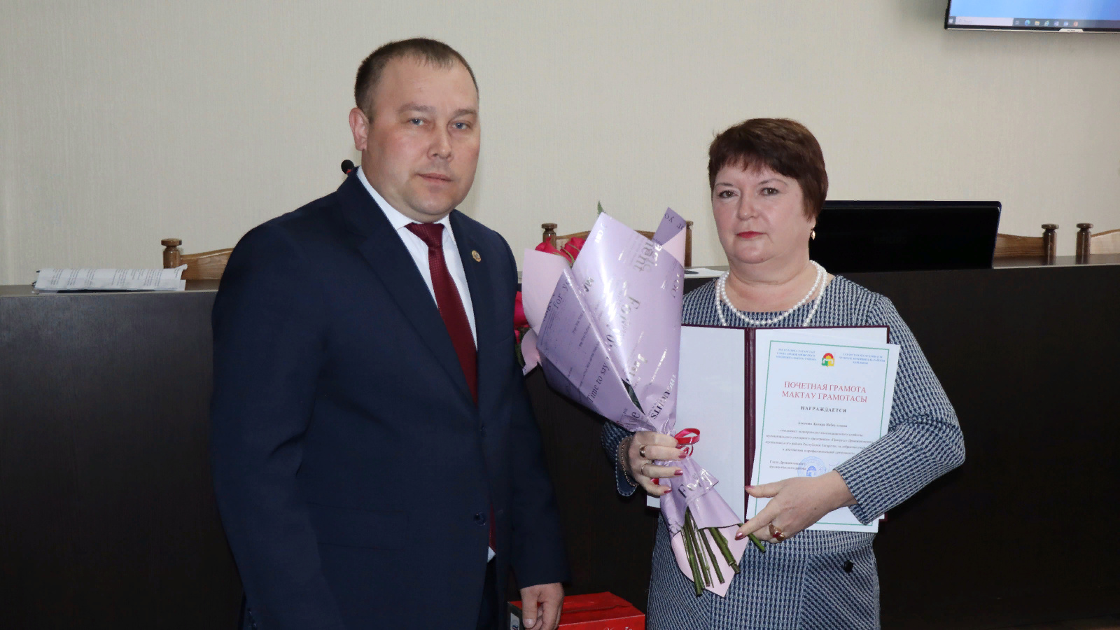 Руководитель Исполкома Дрожжановского района Данис Сатдинов вручил Почетные Грамоты главы Дрожжановского муниципального района  за добросовестный труд и достижения в профессиональной деятельности специалисту водопроводно-канализационного хозяйства муниципального унитарного предприятия “Прогресс”  Дамире Алимовой и специалисту  газовой котельной муниципального унитарного предпреятия “Прогресс” Николаю Иванцову.